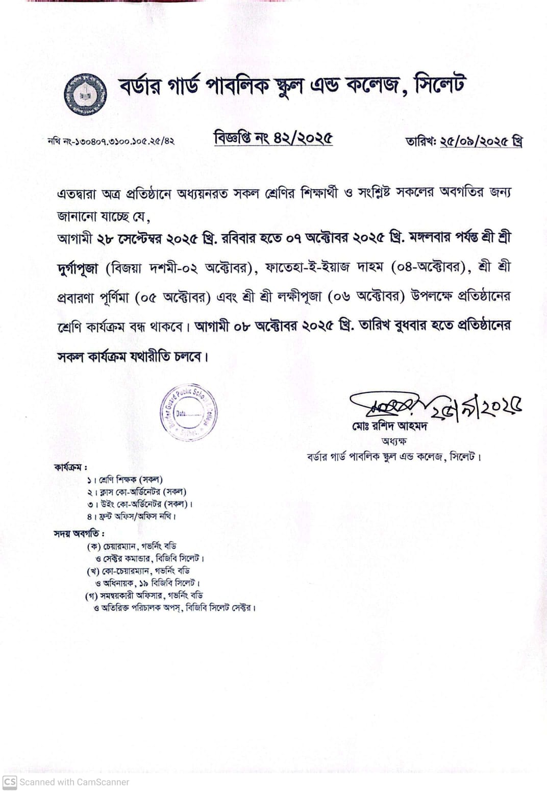 • প্রতিষ্ঠান বন্ধের বিজ্ঞপ্তি