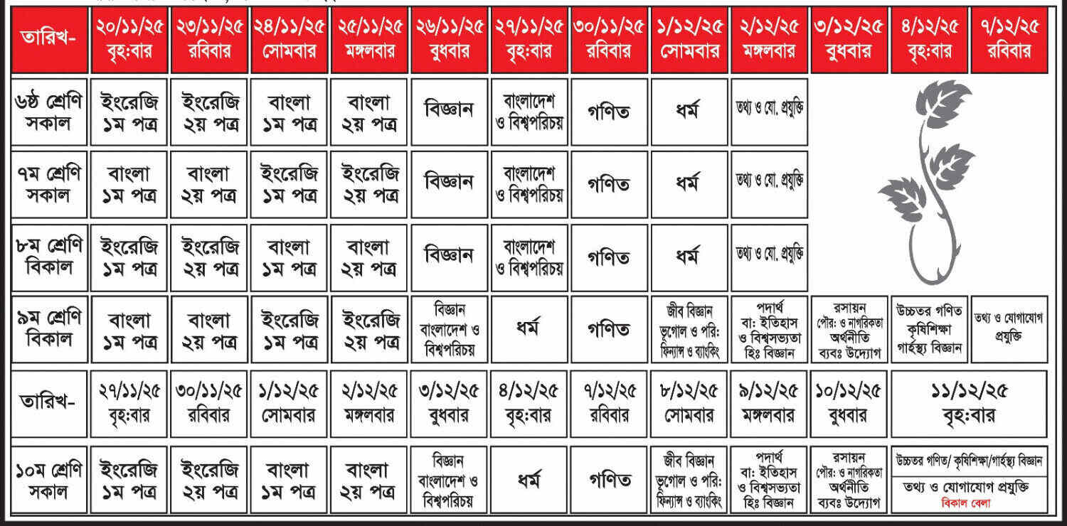 অষ্টম শ্রেণির বৃত্তি পরীক্ষার নতুন রুটিন