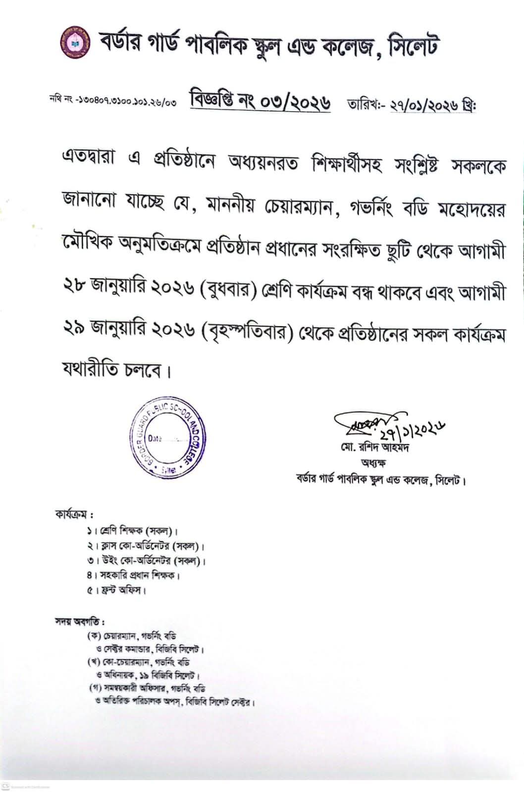 বিজ্ঞপ্তি নংঃ ০৯-২০২৬   বিজ্ঞপ্তি নংঃ ০৮-২০২৬  বিজ্ঞপ্তি নংঃ ০৫-২০২৬  বিজ্ঞপ্তি নংঃ ০৩-২০২৬  Notice