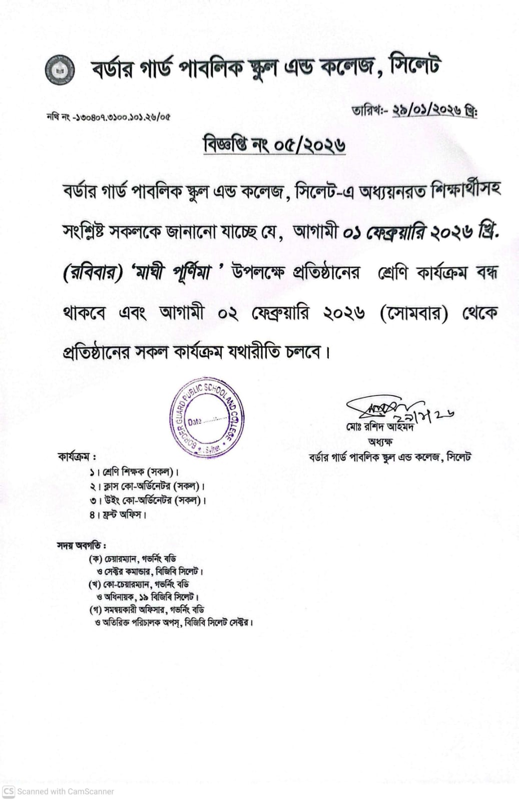 বিজ্ঞপ্তি নংঃ ০৫-২০২৬