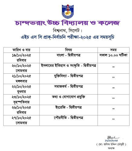 এইচ এস সি প্রাক-নির্বাচনি পরীক্ষা-২০২৫ এর সময়সূচি
